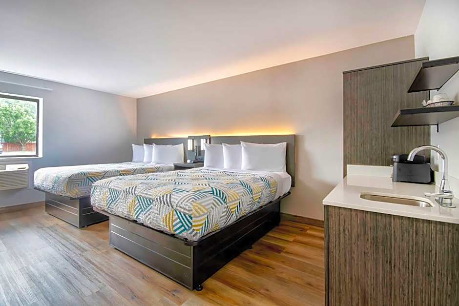 Room configurations cater to different party sizes, from a standard King Room to kitchen-equipped and two-queen layouts. The King Room with Kitchen spans 194 square feet and features one King bed. Deluxe options provide 205 square feet of space with either a King bed or two Queen beds. Additionally, rooms named Room - 2 Queen, Kitchen and Room - 2 Queen, Kitchenette offer two Queen beds for groups who want extra space.